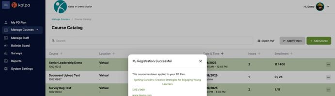Kalpa helps schools and districts streamline professional development tracking, automate approvals, and generate reports with ease. Manage educator learning paths, compliance, and growth data—all from a single, user-friendly platform.