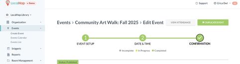 LocalHop makes managing events, registrations, room bookings, and ticketing effortless. Build a custom website, load your events once, and publish them across calendars, kiosks, and more—all from one easy platform.